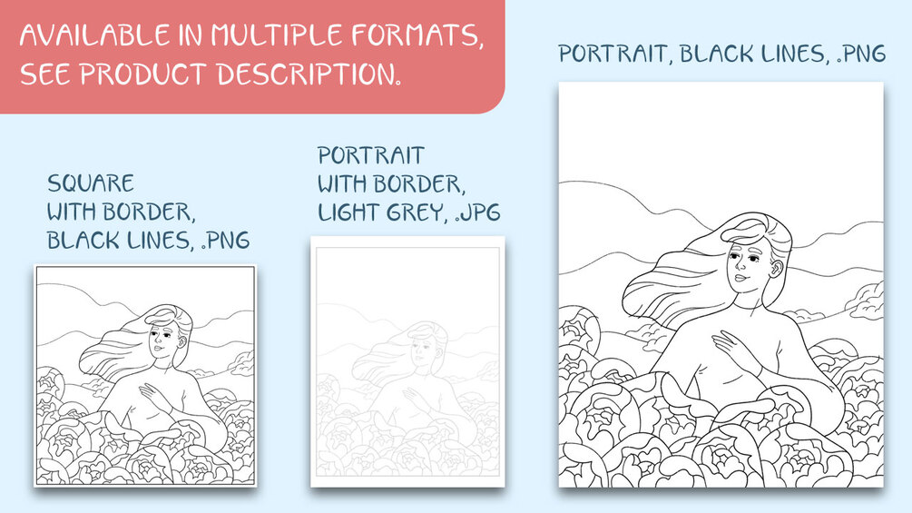 This digital download includes the plain, uncolored line art/coloring page in the following formats*: