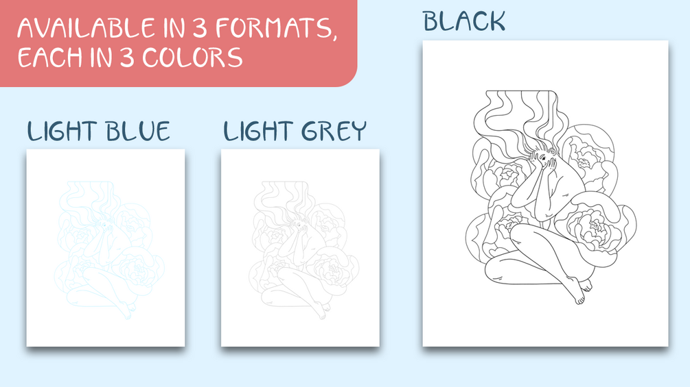This digital download includes the plain, uncolored line art/coloring page in the following formats: